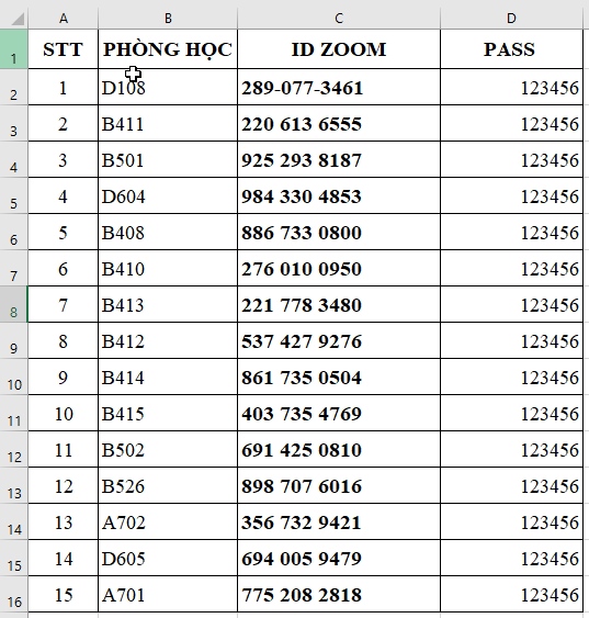 Sinh viên các lớp học lại xem thông tin phòng học trực tuyến tương ứng theo danh sách dưới dây: